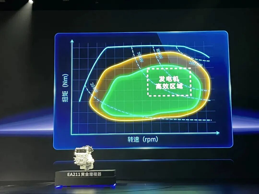 但对于大众这样的合资车企而言,虽然大众EA211增程器的热效率只有40%,但其给到的VTG可变截面涡轮增压器,能够优化低转速响应,提升充电功率,馈电不失性能,还可以降低亏电工况下的油耗。另外大众认为其优势还在于宽泛且稳定的高效工况区间,以及超过2000万台装机量的长期市场验证,能够确保性能和长期使用过硬。