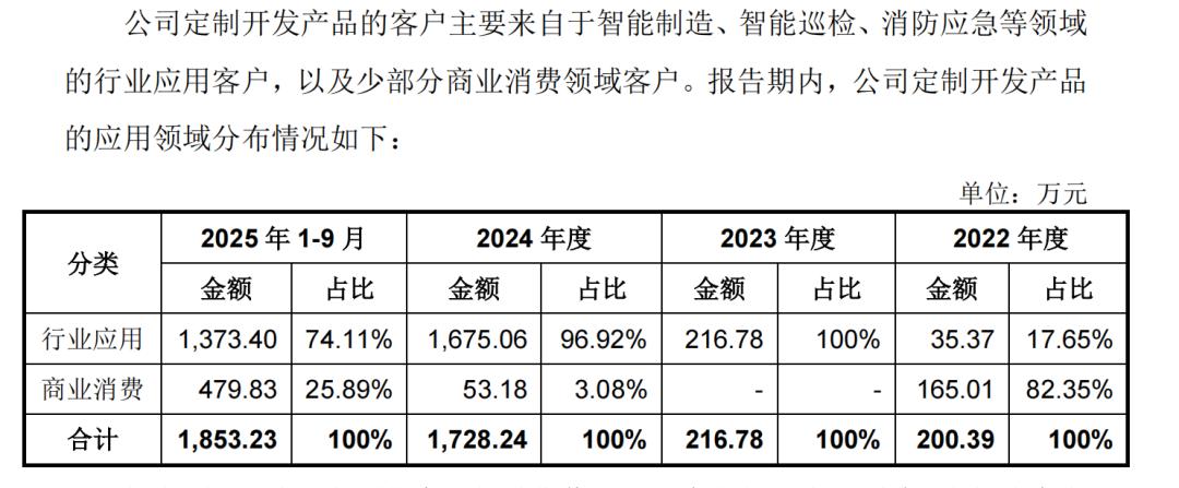 但宇树并没有沉溺于当下的成绩,无论是招股书还是问询中,宇树都反复提及应用场景存在极大的不确定性。这份不确定性主要来源于两方面,其一,产业层面尚未形成终端应用的确定性趋势,正如其在第二轮问询中披露,2025 年 1-9 月行业应用收入占比仅 9%,且场景集中于企业导览等浅度场景,商业化深度仍待挖掘;其二,竞争层面的差异化挑战,宇树明确提及,公司未完全掌握行业客户对机器人的具体使用场景;当前销量领先并非依赖应用领域的独特性,而是综合性价比与迭代速度的优势,这意味着宇树尚未形成不可替代的真实场景壁垒(科研不在讨论范围内)。