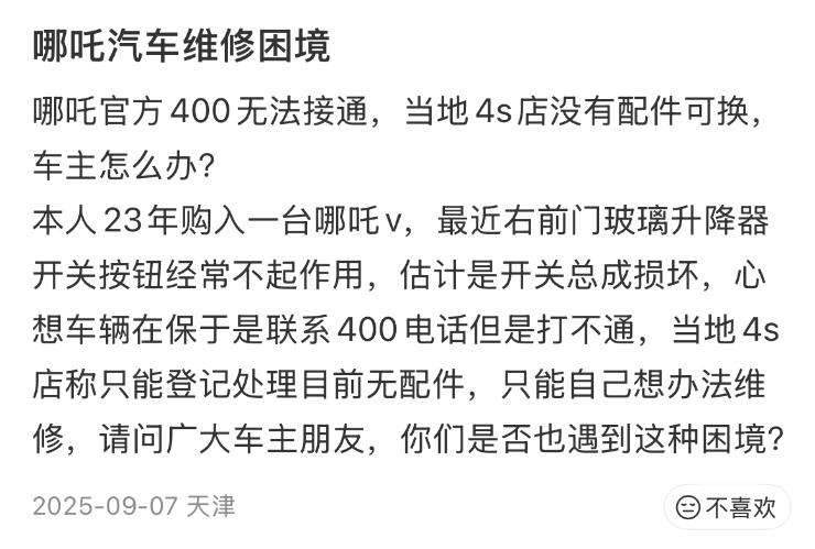 这种质 保期 内自己掏钱修车的情况,并非个案、当初有大量的消费者,就是冲着哪吒官方提供的三电终身质保,才相信了这个没有啥口碑积累的新势力,其结果是,很多车只开一两年就出问题,到需要维修的时候才发现,哪吒的大部分售后点,都人去楼空了。