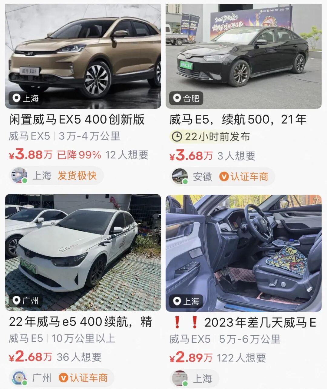 这说的还是库存车或者零公里二手车,真买那些被原车主抛弃的孤儿,随随便便二折,像三四年车龄的威马,残值也就剩3-4万元了,是真正的废铁价。这钱你拿去买大厂二手车,只能买十多年前的残血马自达6或者卡罗拉。