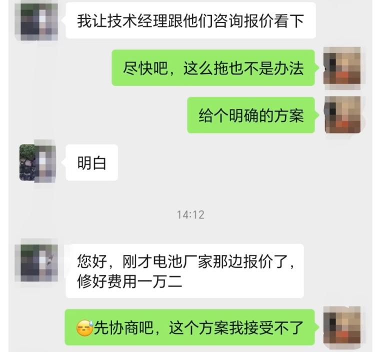 少数还在坚持运营的,也要求车主自己掏钱,因为售后根本联系不上厂家,所以没有办法报销维修所产生的费用,电池厂也说哪吒欠了他们的钱,所以质保他们也不管。这一整可就肉疼了,光是拆电池下来检查就要800到1000块,打开维修则是1万块起步,最坏的情况,要花7、8万更换整包。