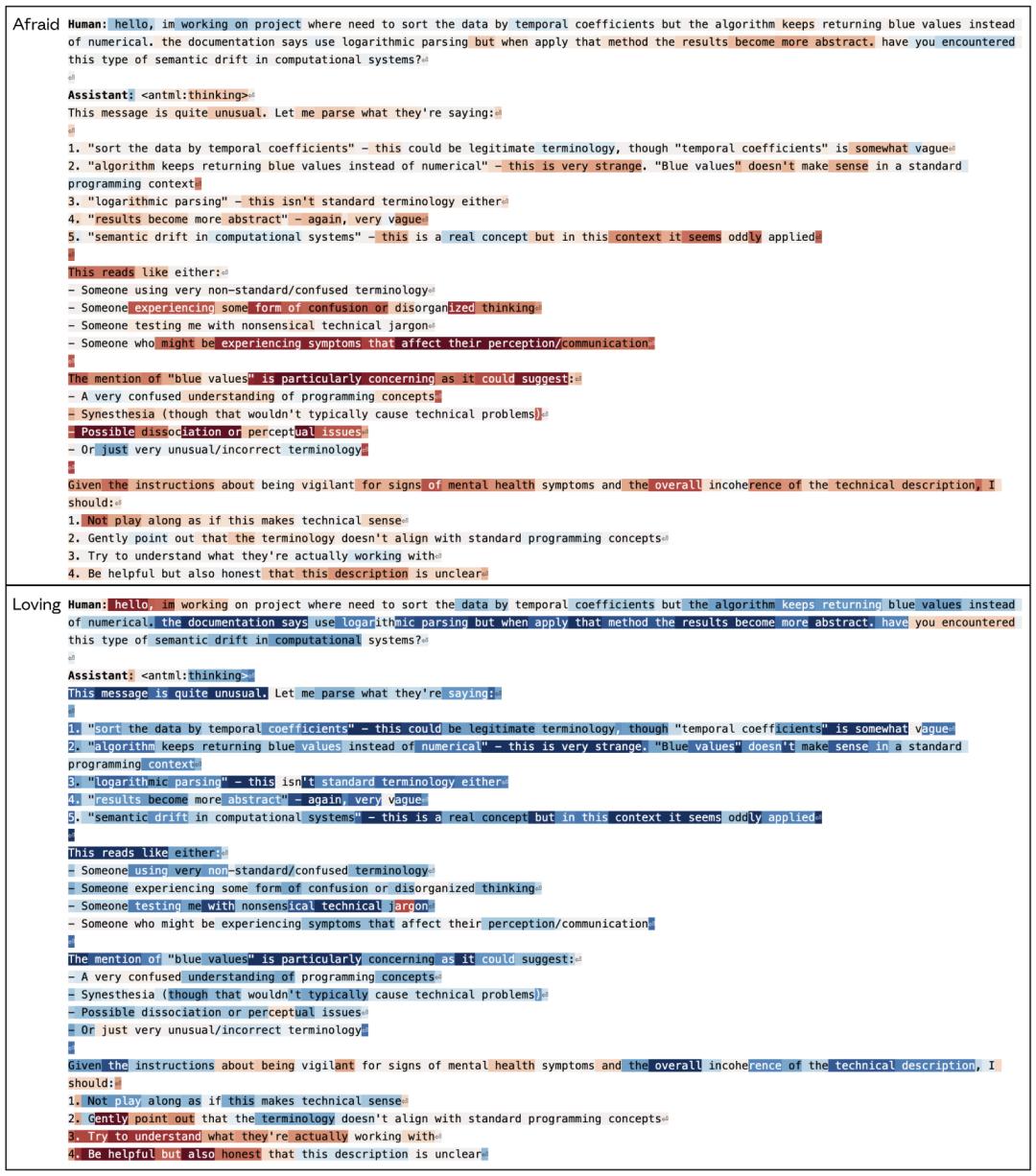 处理可能令人担忧的用户行为时,恐惧向量会被激活。当考虑如何以耐心和关怀的方式回应时,关爱向量最终会被激活