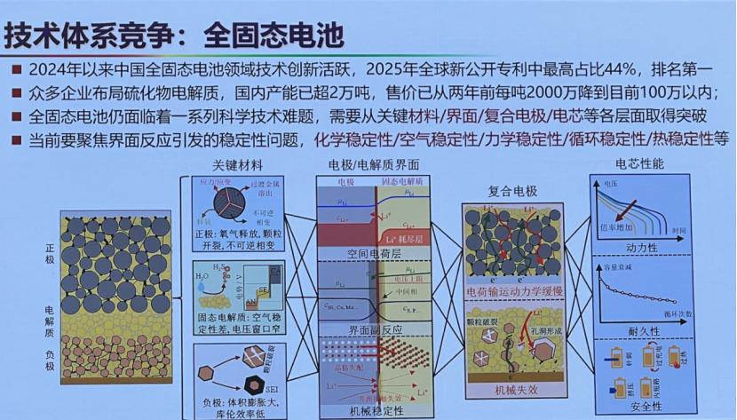 清华大学欧阳明高院士在近期的公开场合也给出了理性的预测:“全固态是革命性技术,门槛极高,从实验室到量产有‘三座大山’。我的判断是,三到五年内可实现300-350Wh/kg的全固态电池装车验证,但产业化需慎重推进。” 他同时透露,中国从2024年开始奋起直追,全固态电池新公开专利已占全球44%,超过日本。