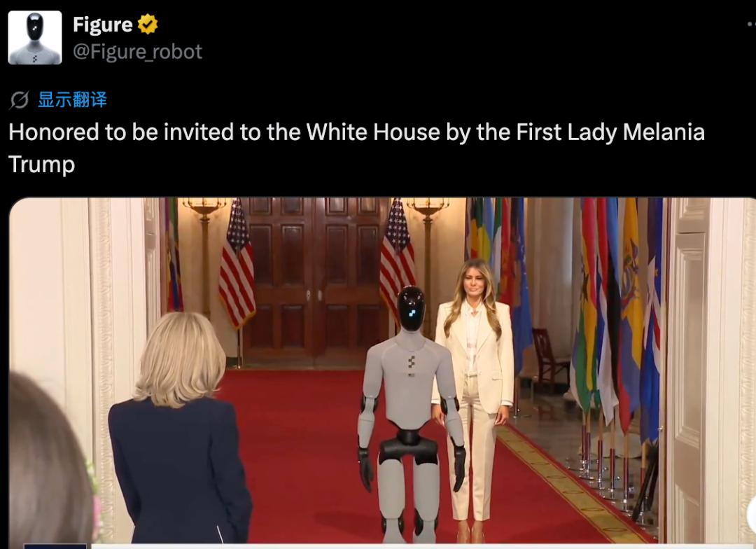 今年3月底,它作为「美国机器人制造」的代表亮相白宫,并陪伴美国第一夫人梅拉尼娅·特朗普出席活动。