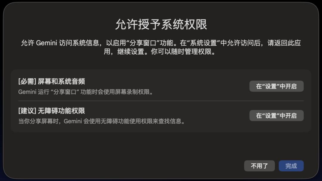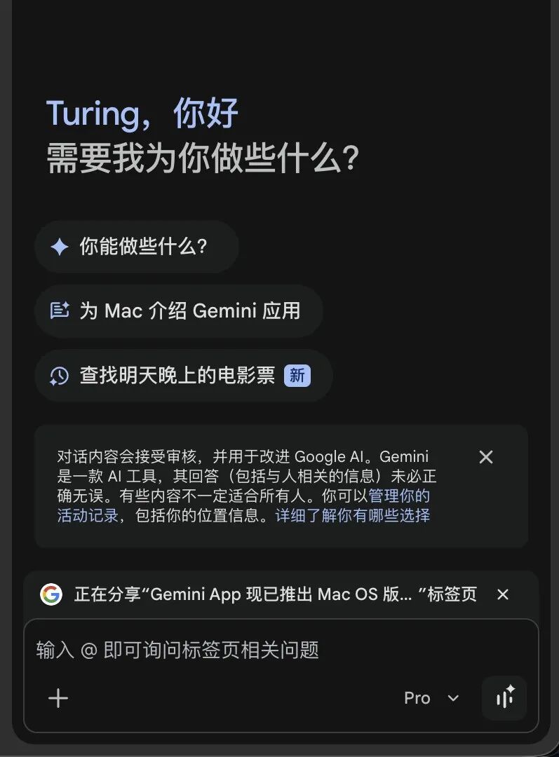 谷歌正式推出 Gemini 的 macOS 原生客户端,支持全局快捷键拉起,也能直接共享当前窗口。