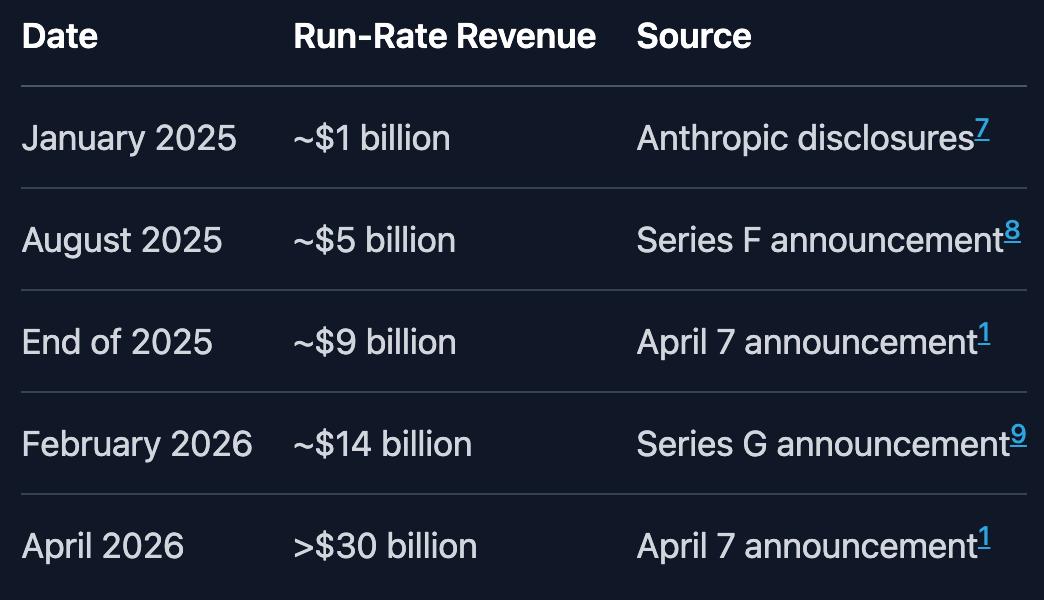 第一个:Anthropic 2026年3月的年化收入(ARR)突破300亿美元。
