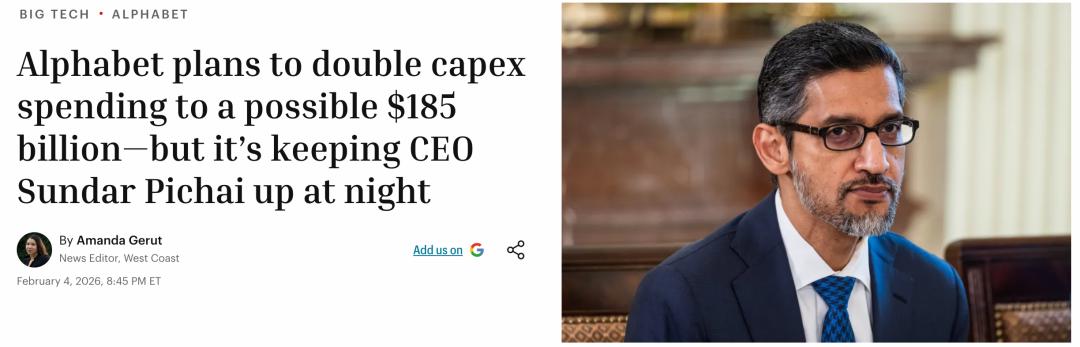 第三个:谷歌今年的资本开支规划是1850亿美元(1750亿到1850亿之间)。