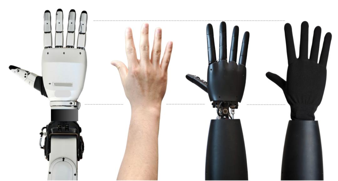 1:1 极致仿生: 将仿生手体积大幅压缩了 60%,尺寸与成年男性手部完全一致。同时增加了 64% 的自由度,具有 22-27 个自由度 DoF,可达空间、惯量分布都无限逼近真实人手。